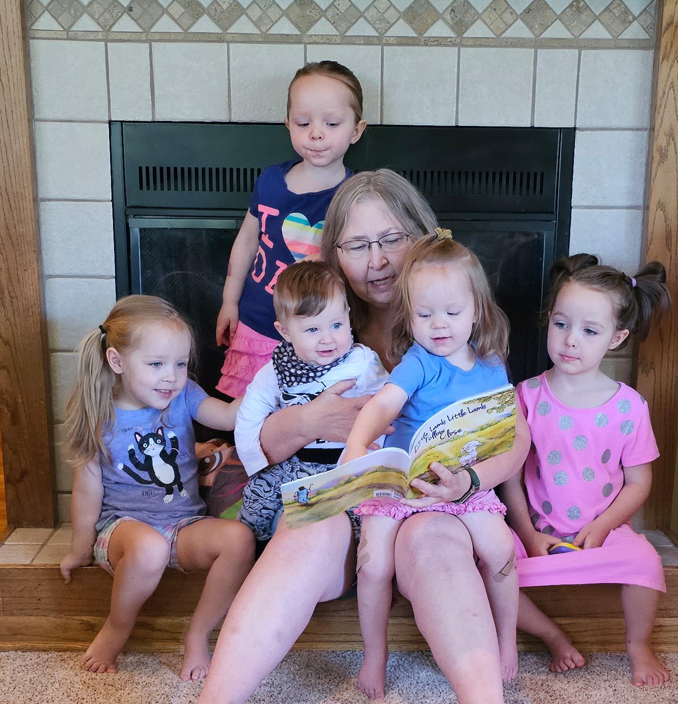 Reading one of artist Kimberly Merrit’s’s books to grand kids.